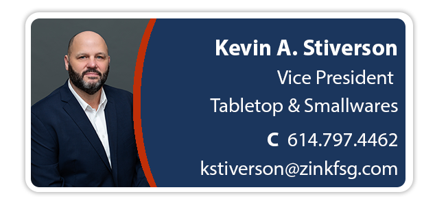 We are pleased to announce the promotion of Kevin A. Stiverson to Vice President | Tabletop & Smallwares.